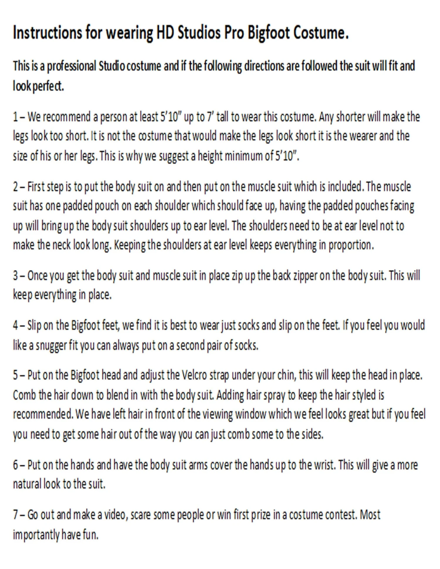 I just got my Bigfoot costume and I have to say this product is highly detailed, well constructed, Fits awesome! Definitely be buying more products soon. If you need anything Halloween this is the right place for you!!! ★★★★★ A. Saluse