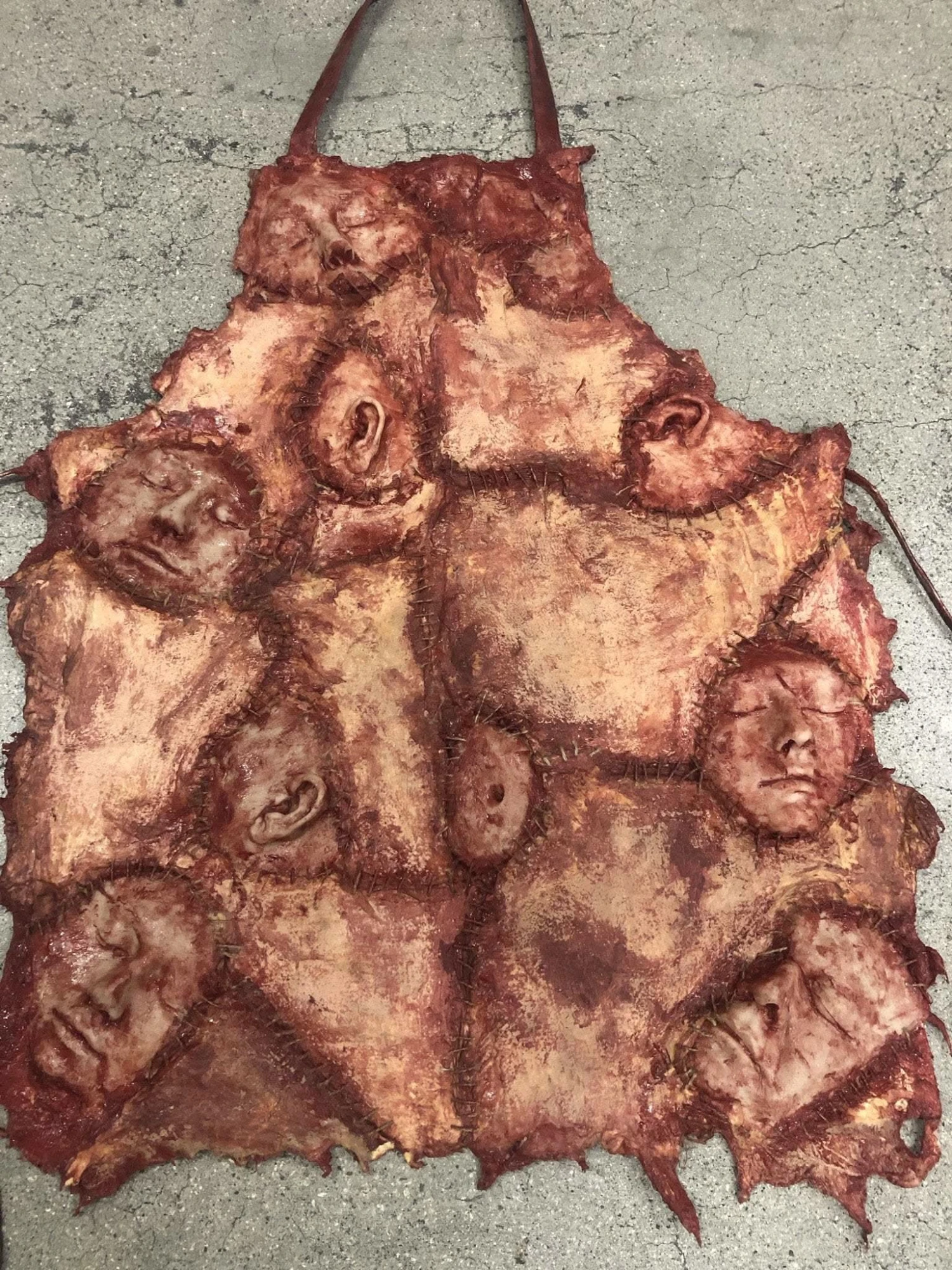 Aprons are made to order, each one is unique and a “one of a kind”. Constructed in latex and silicone this apron is extremely durable and completely water proof. This is the perfect addition to add that wow factor to your Halloween costume.