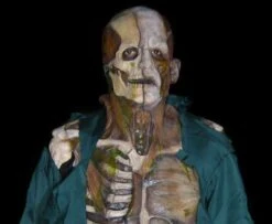 Old timey tattered long sleeve dress with haunted gauze attached with belt. Zombie wig sold separately. One size fits most adults.